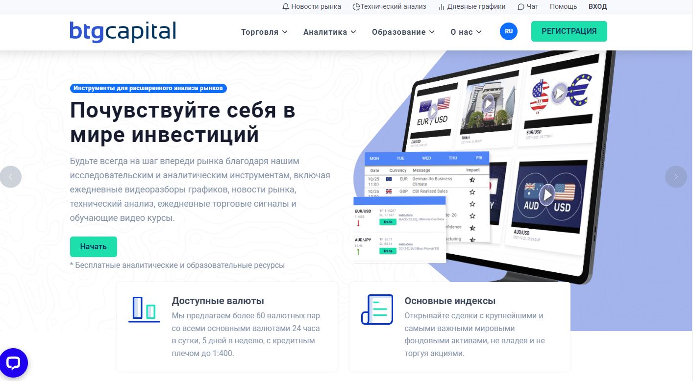 BTG Capital позиціонує себе як ліцензований постачальник брокерських послуг, який «підтримує торгівлю та інвестиції на світових фінансових ринках» і прагне до прозорості та безпеки фінансів. Однак ретельний аудит сайту, сумнівні способи поповнення торгівельного рахунку (депозиту) та негативні відгуки клієнтів показують, що  у цього брокера не все так ідеально, як здається на перший погляд.