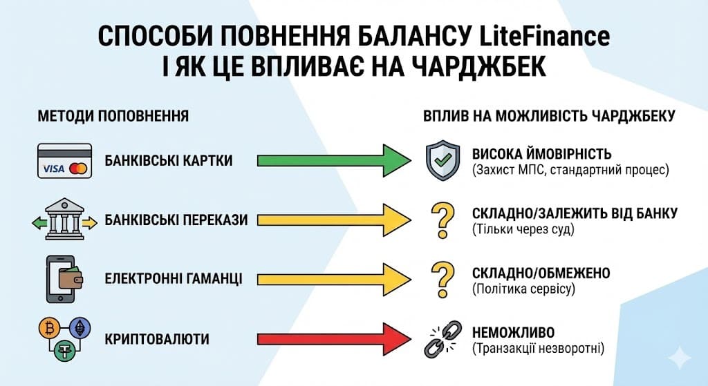 Способи поповнення балансу LiteFinance і як це впливає на чарджбек