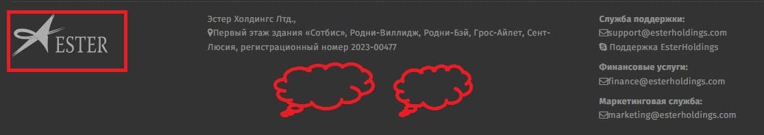 Структура власності Ester Holdings залишається неясною: інформація про засновників і ключових керівників компанії відсутня у відкритому доступі. Відсутність прозорості і маніпуляції з адресами породжують підозри щодо легітимності та намірів брокера. Адреси на сайті Естер Холдингс – це змінні декорації. Їх змінюють, щоб заплутати сліди. Постійна зміна адрес на сайті -це класична ознака шахрайського брокера. Легальні фінансові організації роками сидять в одних і тих же офісах, оскільки переїзд вимагає переоформлення ліцензій і повідомлення регуляторів. У випадку з Ester Holdings, зміна адрес виконує кілька тактичних завдань щодо приховування слідів і ухилення від відповідальності. Як тільки в критичному огляді вказується адреса компанії, шахраї відразу вносять зміну «підвал» (footer) сайту.